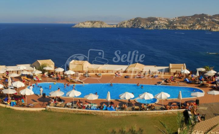 Dalla sua posizione elevata a 80 metri dalla spiaggia di Mononaftis offre anche viste panoramiche sul mare.